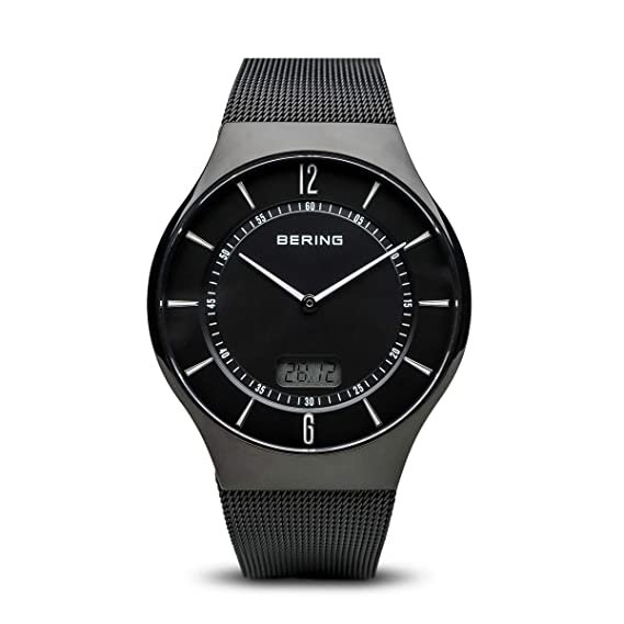 Bering men’s watch, 51640-222, radio controlled collection radio controlled quartz movement, only time, date, day, black polished steel case, black dial color, black milanaise strap, 40mm dial, sapphire crystal, 3 atm