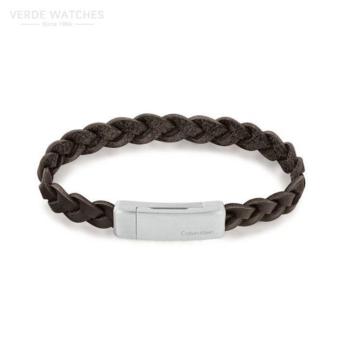 The clasp of this bracelet is rectangular in shape and is subtly engraved with the Calvin Klein logo.