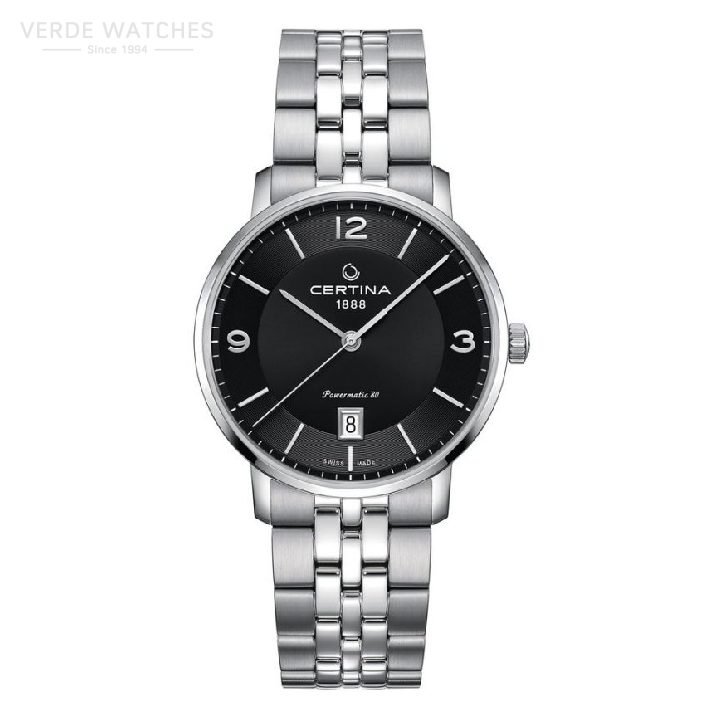Certina DS Caimano Powermatic 80 C0354071105700 is an amazing and attractive Gents watch. Material of the case is Stainless Steel, which stands for a high quality of the item while the dial colour is Black. The features of the watch include (among others) a date function. This model has 100 metres water resistancy – it is suitable for swimming, but not high impact. We ship it with an original box and a guarantee from the manufacturer.