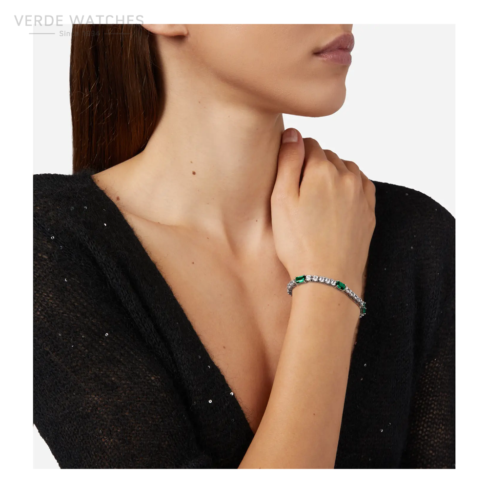 Chiara Ferragni Brand EMERALD Bracelet – J19AWJ04 – Gender: Woman, Color: Silver, Bluespirit experience: Fashion, Material: Rhodium plating, Crystals, Stone: Crystals, Cubic zirconia, Stone color: Green, Weight: 13.50 gr, Template: Tennis, Measurement: 16 + 2, Package: Original Chiara Ferragni Brand, Authenticity certificate: Sì