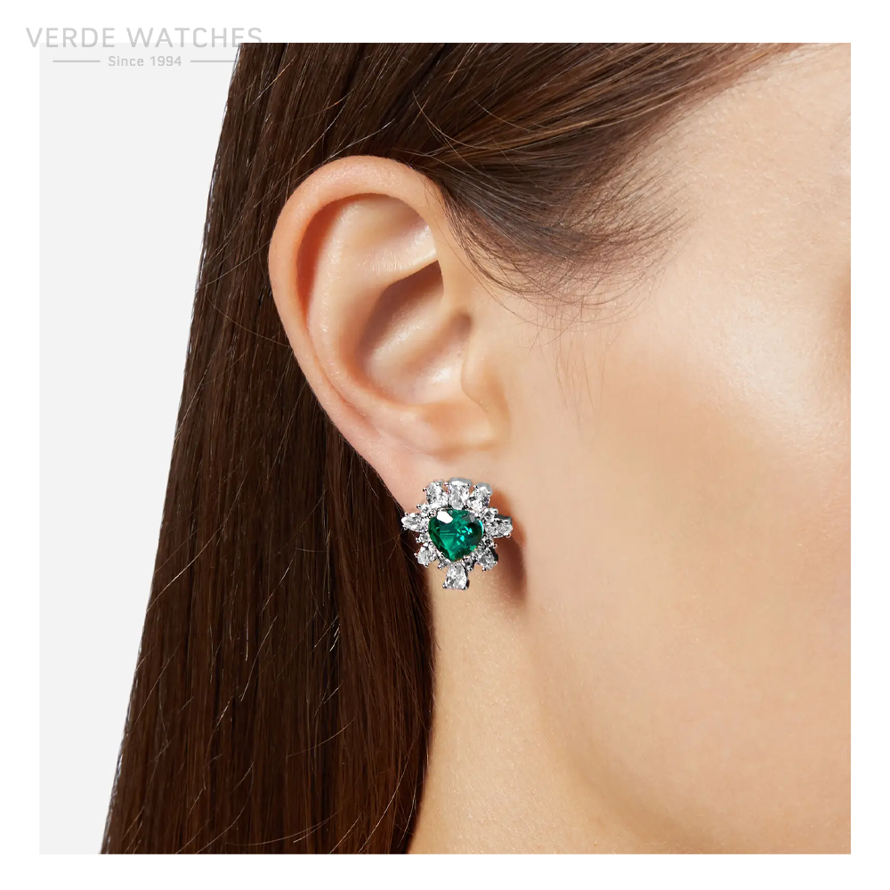 Silver-plated earrings with emerald green heart embellished with a pavé of white cubic zirconia.