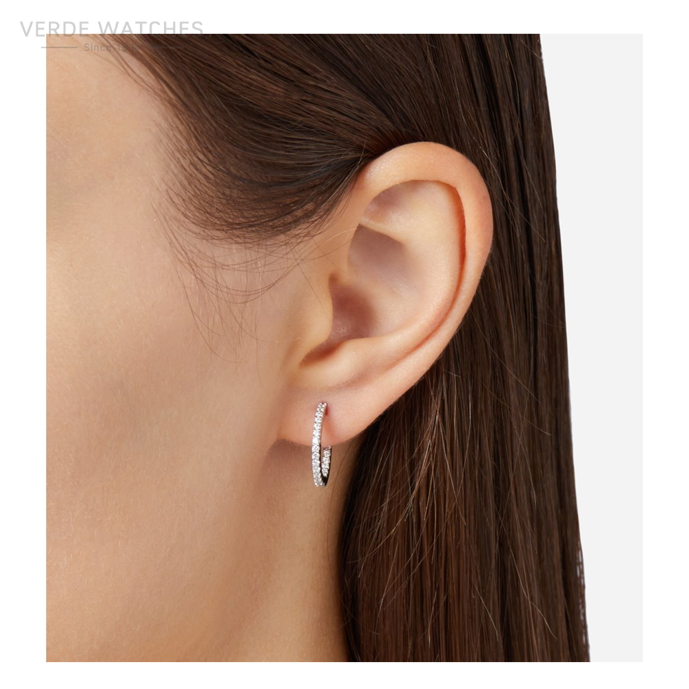 Hoop earrings made of 925 silver with a pavé of white zircons. Diameter: 1.5cm