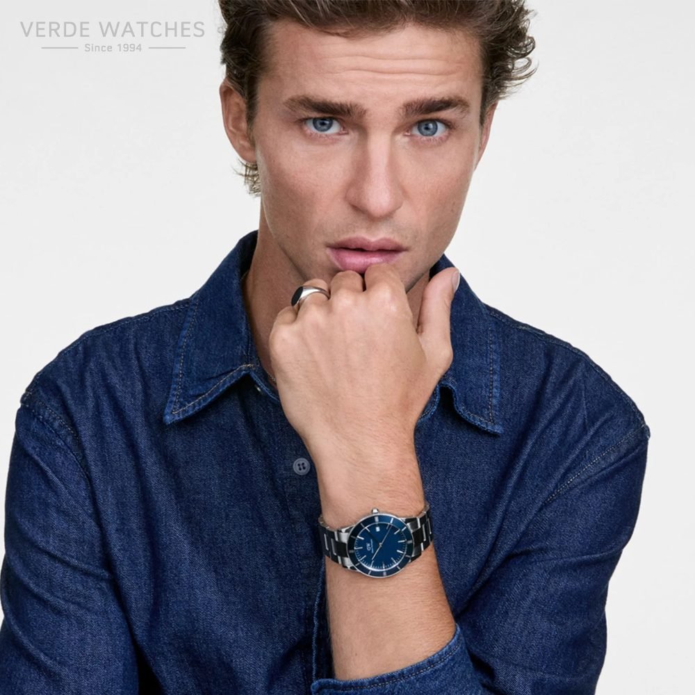 | Ngjyra e fushës / Dial | Blu me bezel blu |