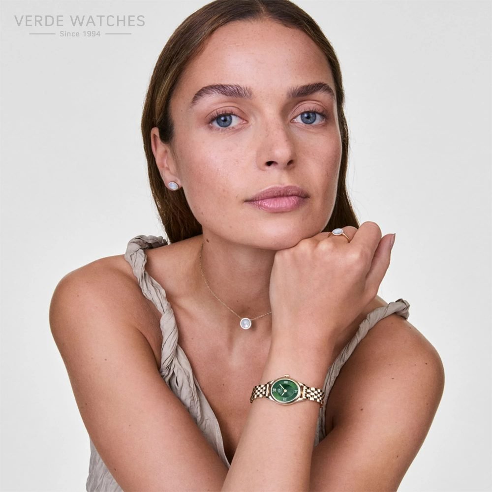 | Ngjyra e fushës / Dial | Jeshile me indekse romake |