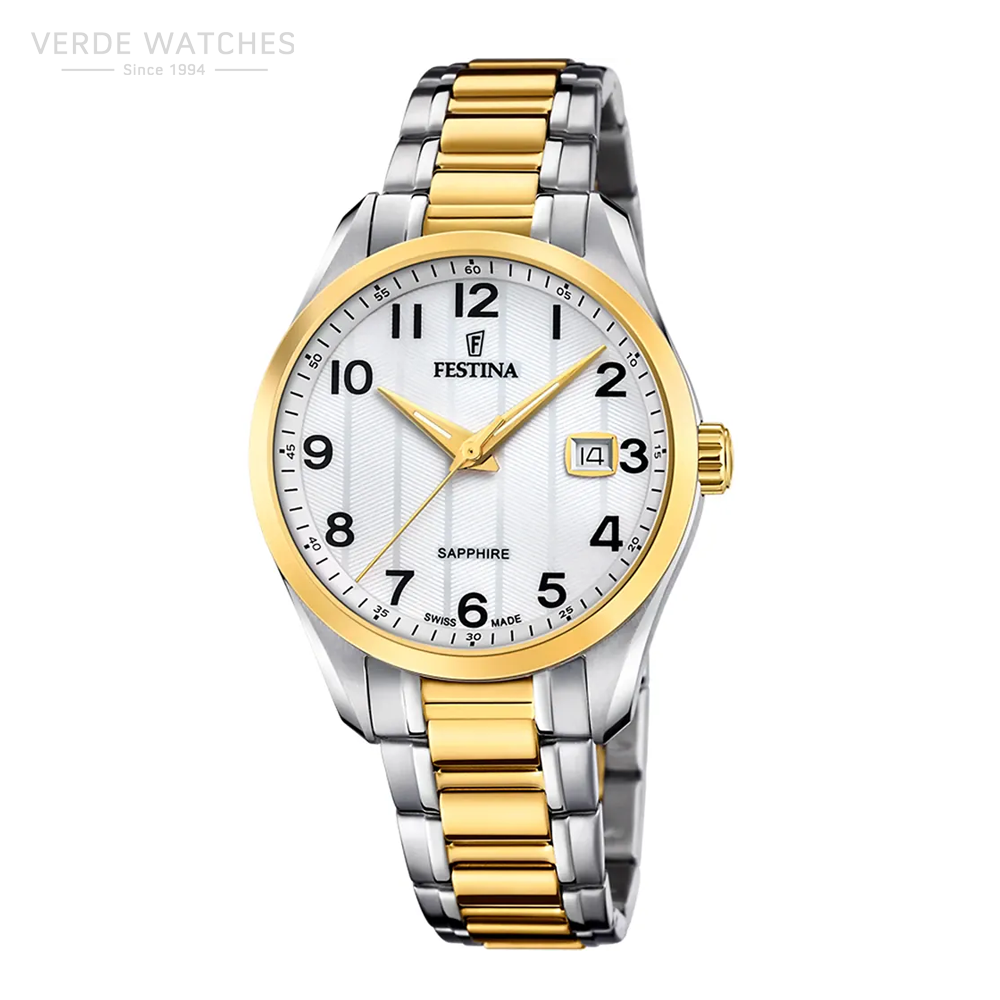 This Festina watch has a case made of stainless steel with a diameter of 37 mm and is fitted with a metal band. Inside the case lies a Ronda movement and the watch features a Sapphire crystal.