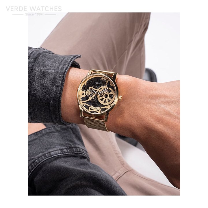 Automatic inspiration gives this dial the look of luxury with all of it’s multi faceted gear details against a self-adjustable mesh bracelet