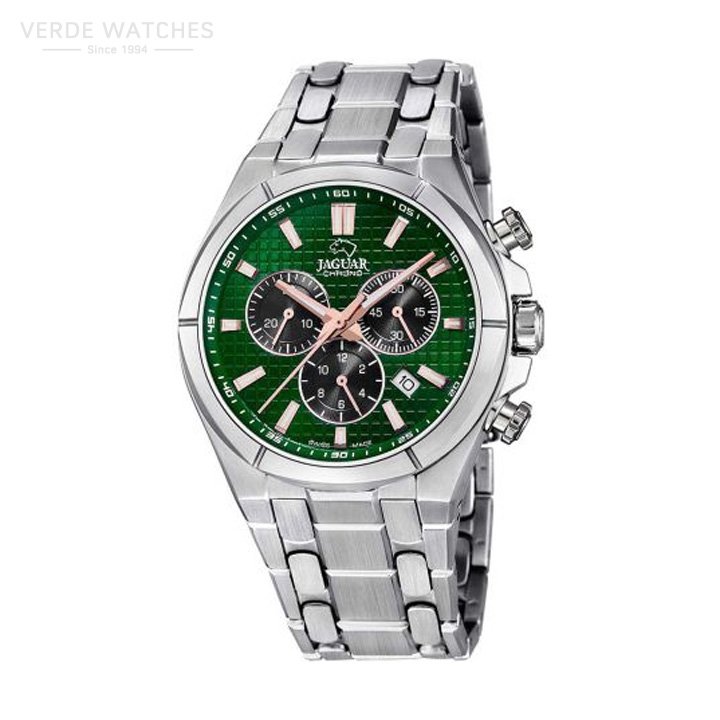 Jaguar men’s watch J695/3 with a stainless steel case and a sapphire glass fitted with a stainless steel bracelet.