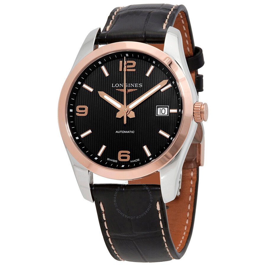 The Conquest Classic Automatic Black Dial Men’s Watch comes with an 18 karat rose gold bezel and a black dial that looks sophisticated and classy. The dial is designed with Arabic numbers 6, 9, and 12 while the date window is at the three o’clock position. With a caliber of L619, reserve power of 42 hours, and beats at 28,800 vph, this watch is a vital accessory for the man of today.