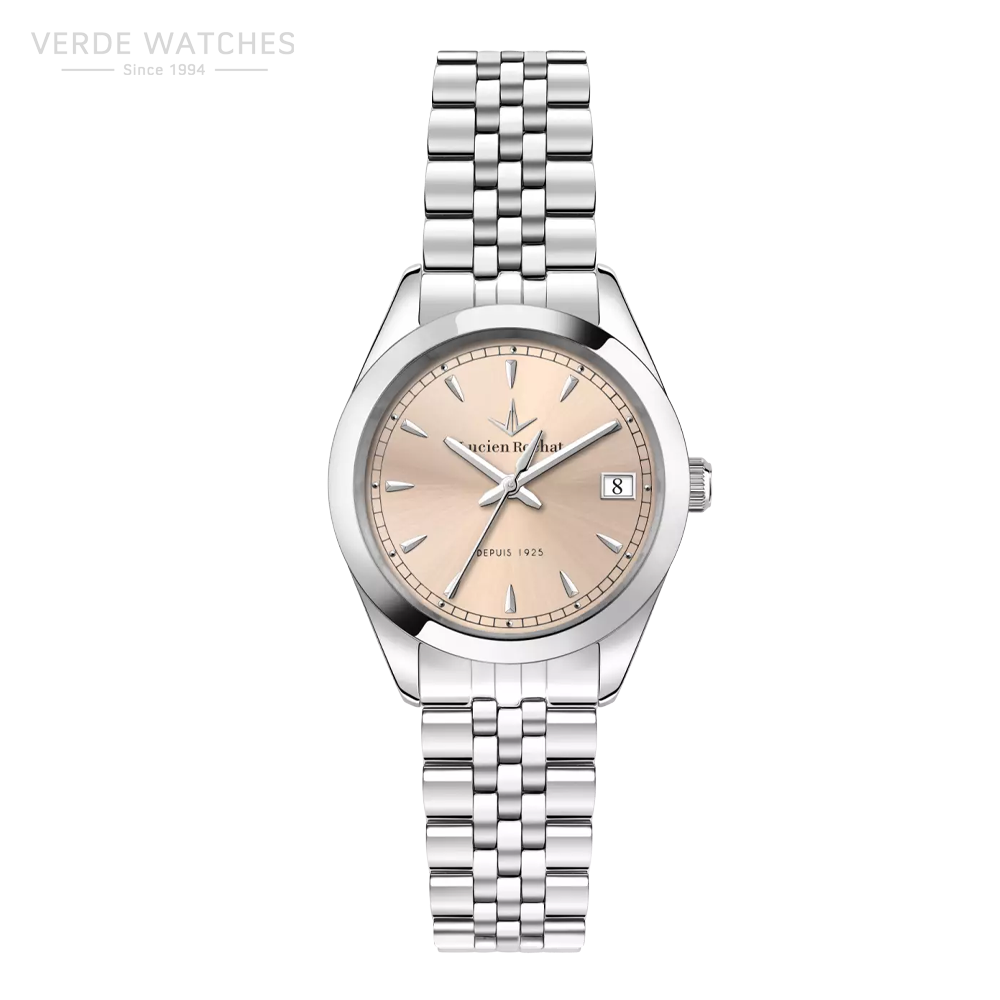 Lucien Rochat women’s time only watch from the madame collection. Clock made of steel. The case is 32mm. Watch with mineral glass and sapphire treatment and date. Water resistance is 3 atm. The reference is R0453114516