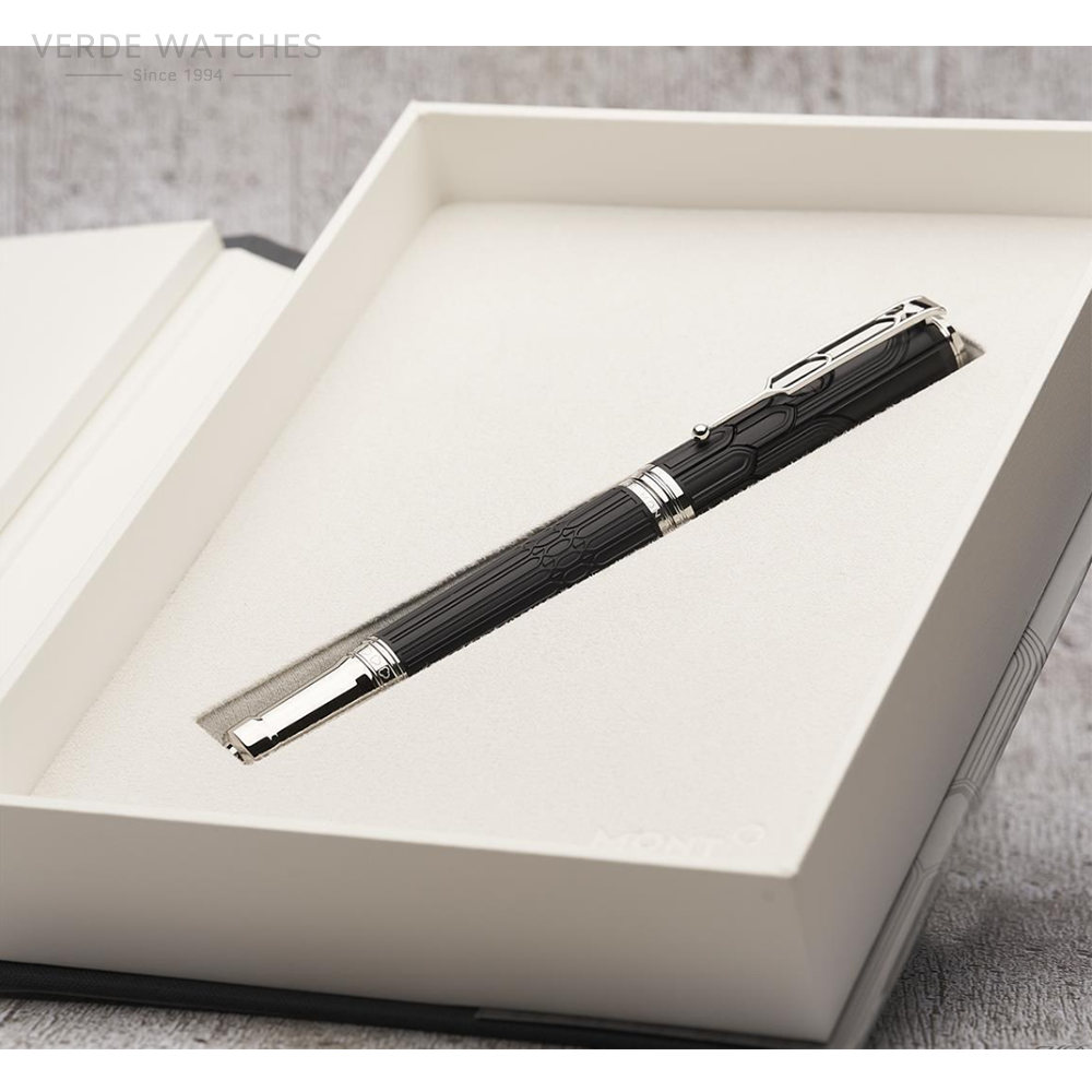 The Montblanc Writers Edition Hommage à Victor Hugo Limited Edition writing instrument in black precious resin with platinum-plated details pays homage to the literary genius whose life and work have forever marked the history of France. This edition is largely inspired by the novels of Victor Hugo and the architecture of Notre-Dame. Engraved with Victor Hugo’s signature, the cap features embossed Gothic-style arches, while the end of the clapper-shaped clapper is reminiscent of Quasimodo and the famous bells of Notre Dame.