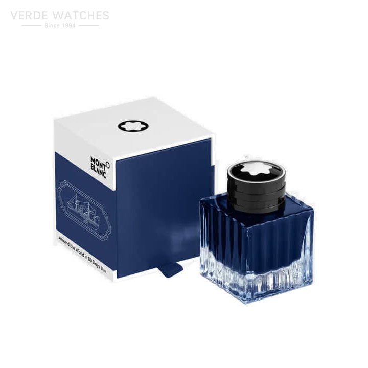 Montblanc Ink bottle 50 ml, Blue. Montblanc Special Edition Ink bottles come in square packaging that evokes concepts and themes of each collection, making them valuable collectible gifts for Montblanc enthusiasts. The colour of the Special Edition Around The Wold in 80 Days is inspired by the blue of the Mediterranean sea.