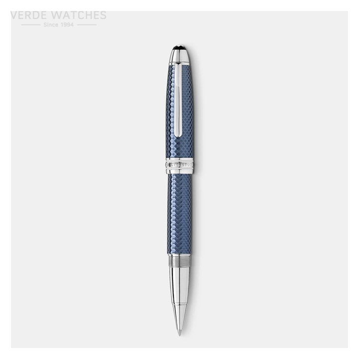 The Meisterstück Glacier Solitaire Rollerball is inspired by the mystical glaciers of the Mont Blanc mountain, standing for our dedication to high quality products and our attitude towards exploration and adventurous spirits. The cap and barrel with special engraving are covered by a translucent blue lacquer, representing the geometrical refractions of ice crystals.