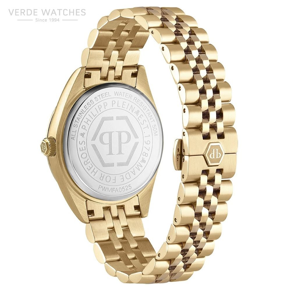 | Materiali i kases & bracelet | Çelik inox i veshur PVD i artë |