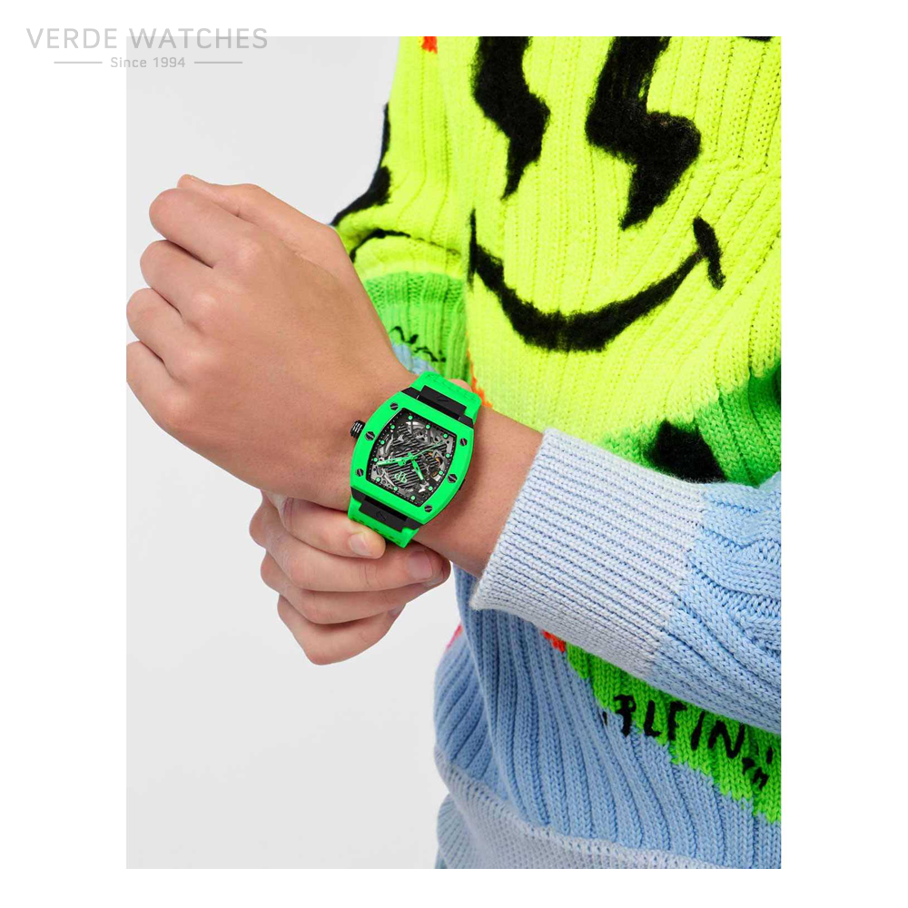 Get ready to experience the next evolution of our iconic bestseller with the new generation of the $keleton with fresh new summer colors. This groundbreaking timepiece is a testament to our unwavering commitment to pushing boundaries and surpassing expectations. Blending the iconic shape and the silicone top ring and bracelet, the new $keleton is absolutely modern and mesmerizing. The new bold color infusion guarantees to make this timepiece the most memorable accessory ever.
