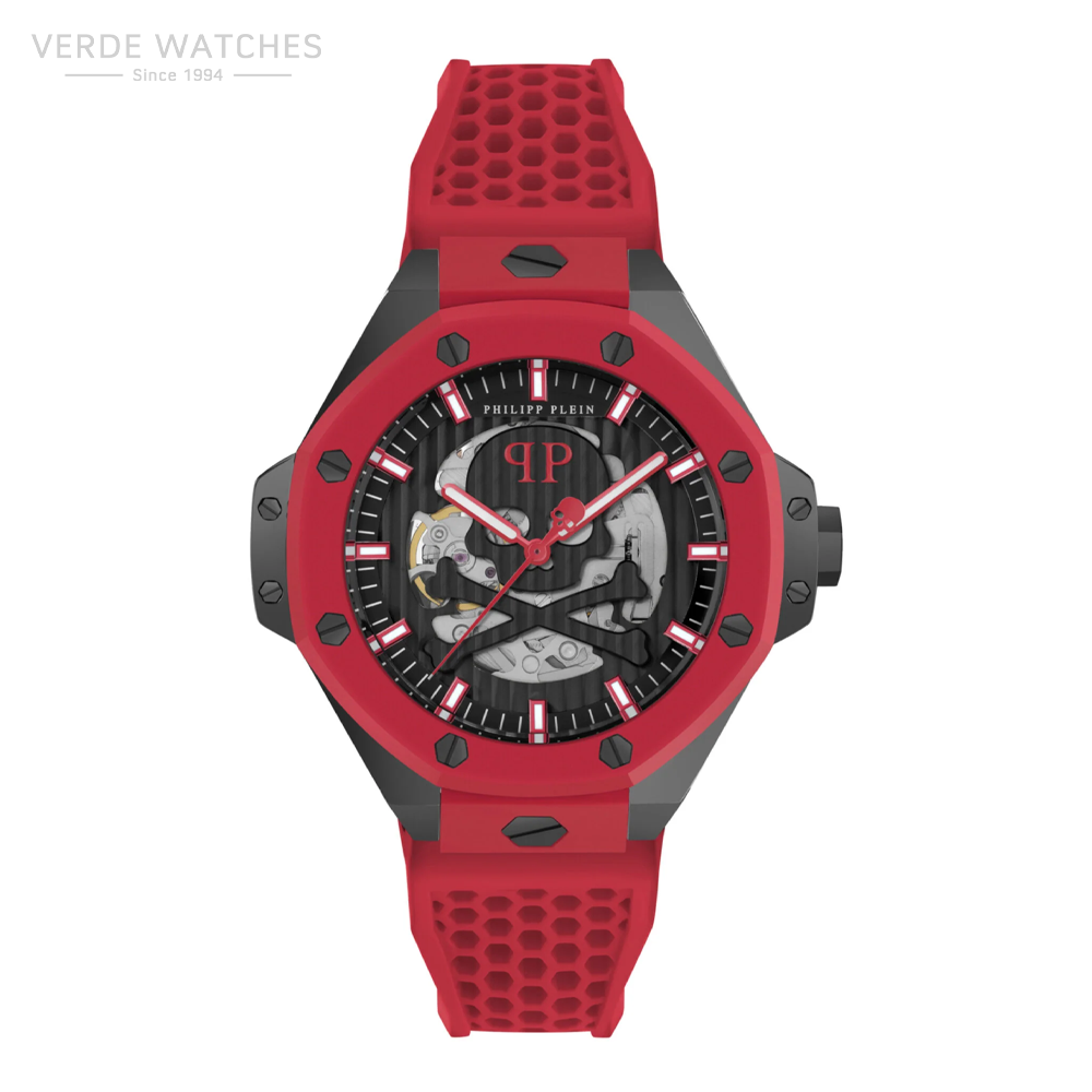 Innovation meets consistency in the new SS24 Plein $keleton Royal, a pinnacle of watchmaking excellence that has the power to enchant with its geometric-shaped case and iconic branding elements. A true revolutionary transformation in the Philipp Plein portfolio. Thanks to the exceptional automatic movement, this watch effortlessly elevates the timepiece collection to new unrivaled heights.