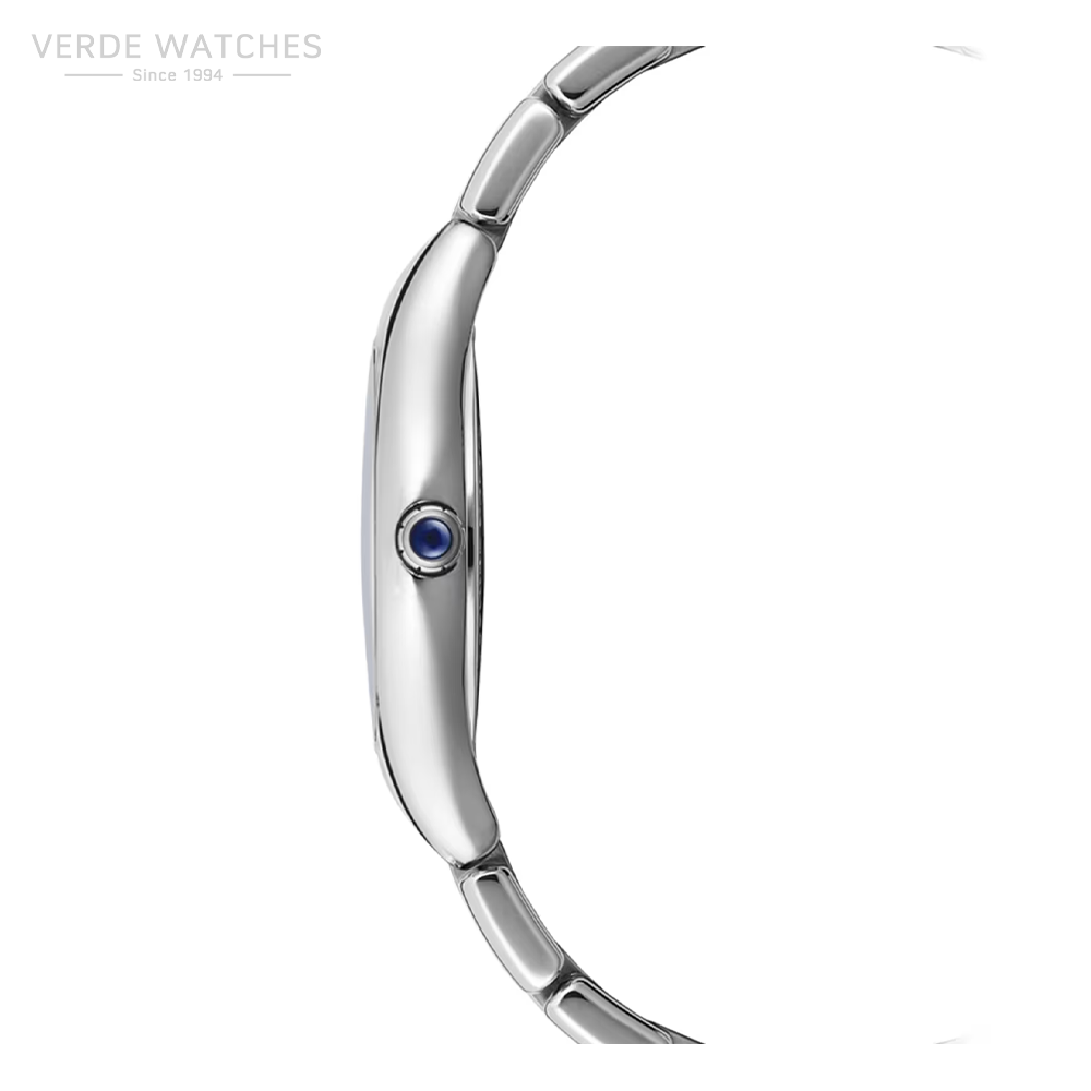 This delicate stainless model features a 32mm case and a subtly crafted deep blue dial. Its finishing touch is a crown sheltered by a layer of midnight blue lacquer. The dial is adorned with 11 diamond indices and a Roman XII, as a reference to the collection’s previous models.