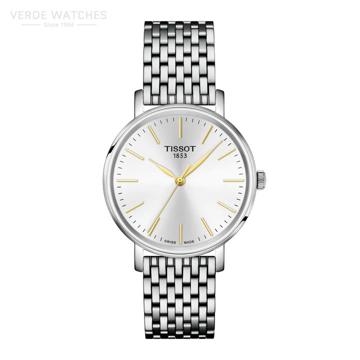 With the Everytime collection, Tissot comes back with a watch that, thanks to its minimalist, clear and timeless design, is suitable for all lifestyles and outfits. All versions of this Swiss-made quartz watch have a robust 316L stainless steel case and a scratch-resistant sapphire crystal. Different straps perfectly complement the collection and give each Tissot Everytime its own unique look.