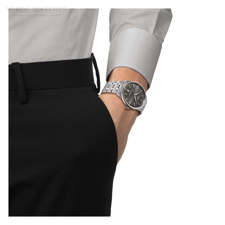 Close your eyes and think of a pure Swiss watch and you’ll see the Chemin des Tourelles. Named after the street that leads to Tissot’s home in the Swiss mountains, it’s Tissot’s icon: round, classic, mechanical, ageless. Now updated and refined, this edition has a gently domed sapphire crystal that sits over a soft-sunray dial with simple, elegant baton hour markers, each faceted to catch the light in an understated but sophisticated way. And under that is the Nivachron Powermatic 80, a state-of-the art automatic mechanical movement with an 80-hour power reserve and elevated anti-magnetism. A watch for all time.