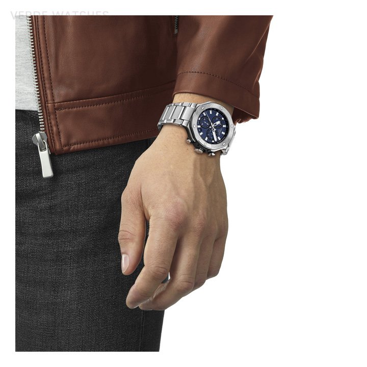 This year it comes back with a new design that now features a more elegant dial – giving the watch a purer look – but still respecting its sporty roots. Like biking, Tissot is where passion meets innovation and style. The T-Race collection is inspired by that lifestyle and – freedom, the open road, and passion: it is the gentleman biker’s watch of choice. The T-Race family keeps the earer immersed in the mechanical environment, and constantly evokes its spirit. For example, there is a brake disc and calibre on the bezel, the pushes are inspired by handlebars, and engine cooling fins are depicted on the side of case. It is water resistant, with a Quartz chronograph movement, and distinct hour and minute hands coated with SuperlumiNova. Tissot has taken inspiration from their collaboration to produce watches that reflect the dynamic natures of bikes themselves and the emotion of the sport.