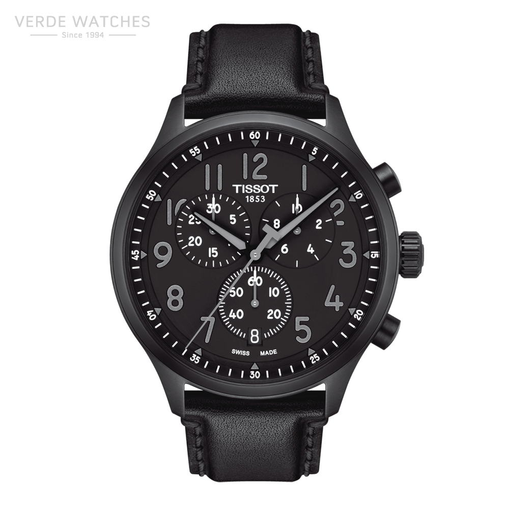 - Swiss quartz movement, 316L stainless steel case with black PVD coating, Arabic dial type, Date