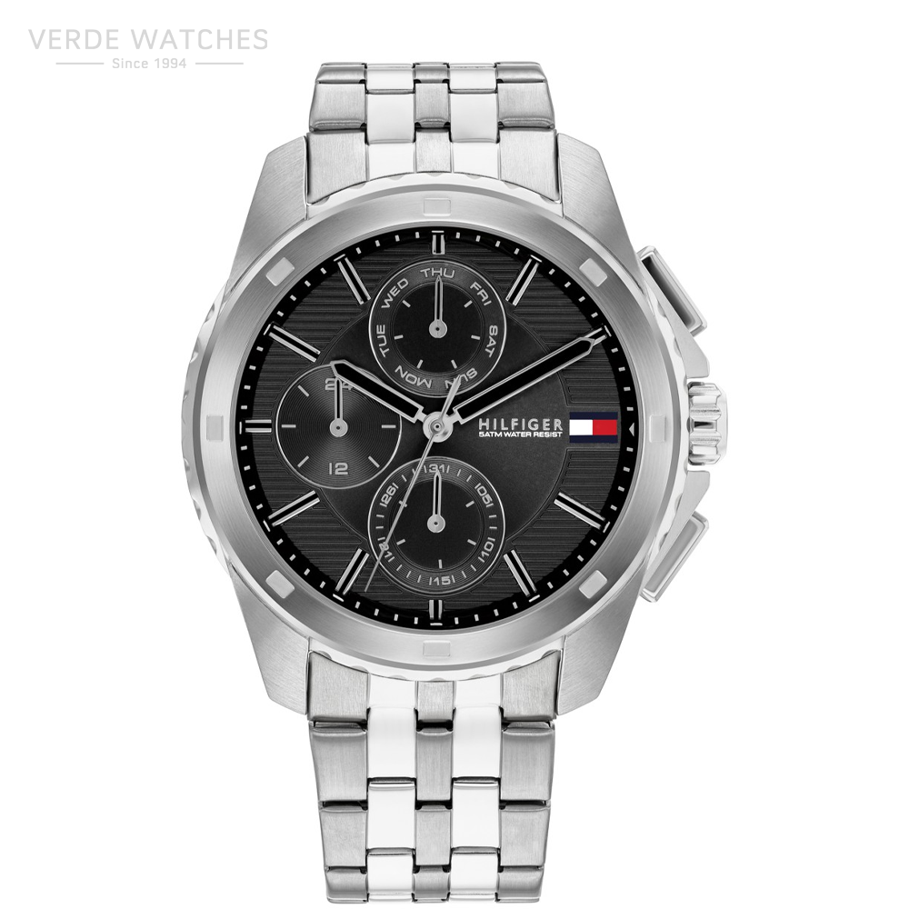General Gender Men’s collection Walker Weight 163g technical features Technical design quartz plant Epson calendar Date, day of the week Housing material stainless steel optics partially polished Color silver Case diameter 44mm Case height 12mm Case shape around Bezel color silver Water resistance 5 bars Type of glass Mineral glass Dial display analogous Dial color black bracelet Band type Link bracelet Band material stainless steel Ribbon color silver Bandwidth 22mm